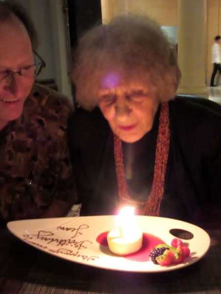 I do believe that this first evening was the highlight of her celebration. This is Otto, the band leader who came over on the band break to shake her hand and ask her ” what did you do to live so long, what is your secret “. He really wanted to know as he asked over and over! Again look at that smile.