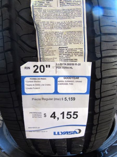 They just so happened to have four of the exact tires that we needed in stock. Lucky us. The installed price was 4211 pesos each. A cost of $2.92 USD to install and balance ( which they did properly with with weights ) per tire. However the overall cost per tire was approximately $29.00 more per tire that it would have cost us to buy the same tire in the US not including installation and balancing. I think we did very well overall. So glad we decided to get two now and not wait until we got back home. Time saved 🙂