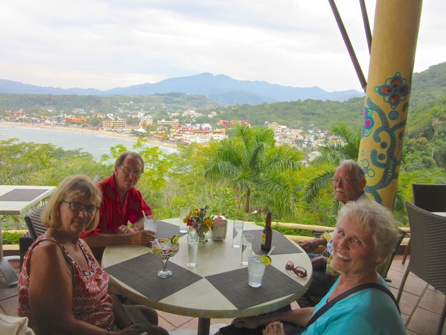 We then headed over to Paraiso del Pescador RV Park to see friends and blog readers Sandy and Rex. After some chit chat and a glass of vino for me we headed over to La Vista restaurant for a late lunch or early dinner. My head had been spinning from our late night and little sleep but after a few hours with these wonderful folks I was totally back to normal. A beautiful view overlooking Guayabitos but better enjoyed on a clear day. We had RVed here for three years, maybe 15 – 17 years ago.