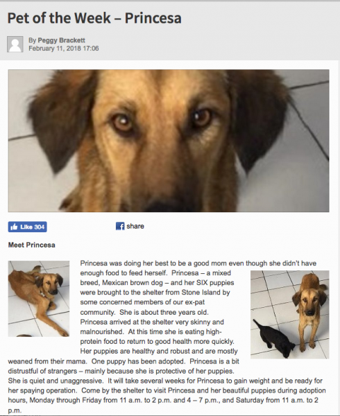 So I was planning on posting this today when I found on the local Mazatlan news website more information on Princesa.  I never read any of the words but as soon as I saw the photo I knew it was her.  Her eyes go right into my soul.