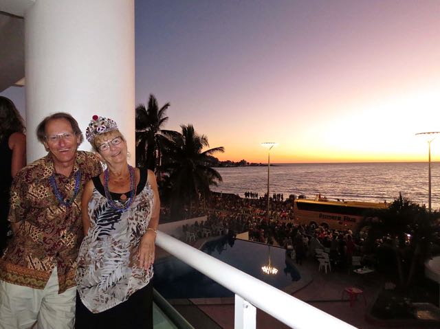 Thanks to wonderful friends who invited us to their lovely condo overlooking the malecon to watch the parade.  We had a great view being only one floor up from the pool level, great food to munch on, drinks and most importantly a bano 😀   The first parade we saw was in 2012 which remains our favorite and the last one was back in 2014.  It you wish to see the photos and blog post just type in Carnaval parade in the search box in the top right corner.  Usually I would do links to those for you but I have begun my research into our Europe trip and the day slips by.  It is now almost 8PM and I am just starting to write this post and dinner is yet to come.