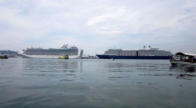 A few days ago we went into centro to pick up some veggies at the mercado.  Two cruise ships in port.