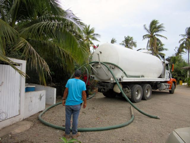 David the owner of the park ( this is the park handyman Ismael in the photo ) was here within a few hours and had a pumper truck on site very quickly. It took a long while to pump out the ‘you know what’ !