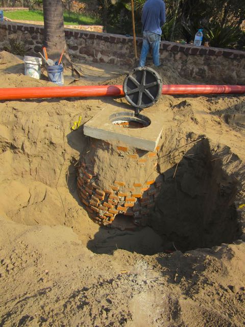 The next day they built a new manhole on the other side of our garbage area and then broke through the wall and connected into our ‘sewer hole’. We heard the noise all day and could smell when they connected. So now we are officially connected to the main sewer system which at the moment goes nowhere as it is not finished. Sure hope that the RV sewage won’t start to fill the new pipes for a long while. Where will it go? We have no idea but suspect it will end up in the ocean, untreated. Mazatlan itself has a sewage treatment plant that eventually dumps everything in the ocean. Sorry but I never got the final photos of the competed job but I am sure that you get the picture in more ways than one.