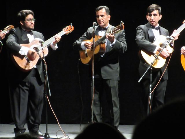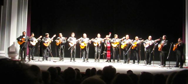 The group is called Rondalla del Sector Educativo and are from Culiacan.  They are all secondary school teachers.  Many also teach music.  One fellow teaches teachers how to teach and another writes the curriculum that is being taught.  Amazingly thirteen of them play classical guitar and one the bass fiddle.  And then they began to sing 🙂  Incredibly amazing.  We were spellbound.  Of the fourteen in the group, six are from the same family.