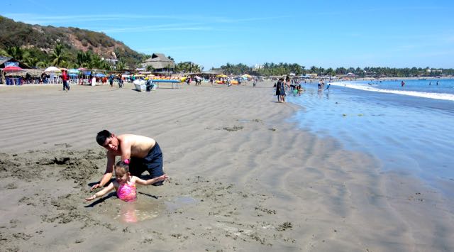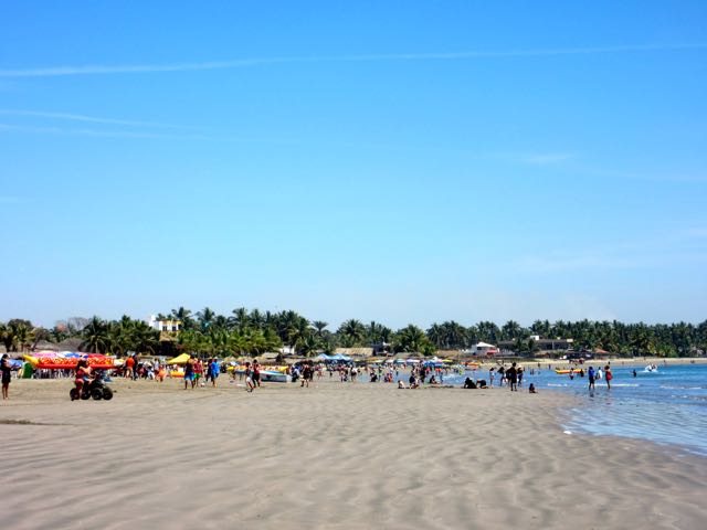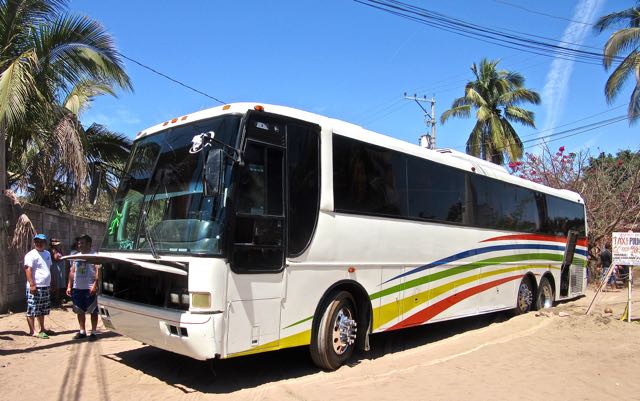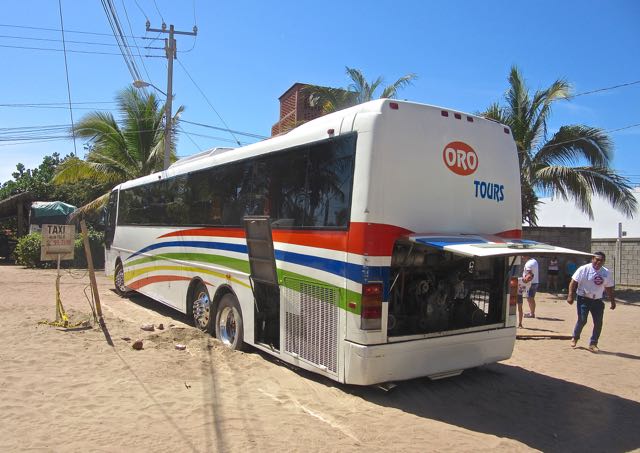 This tour bus was really sunk but a tractor eventually got it out.  We saw three of these large buses.  It is a long weekend and people are pouring into the Isla.