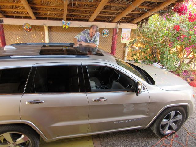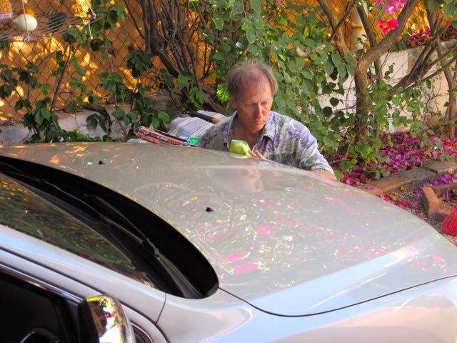 He waxed the car by hand and then buffed it out.  Took a good part of the day.  The next day he detailed the inside.  It looks brand new again, that is until we drive it out of the RV park.  So much dust here.