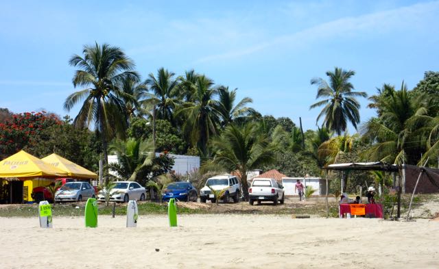 Parking and surfboards for rent. That lean to on the right is selling a variety of non alcoholic beverages.