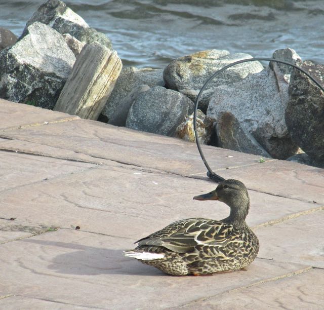 She slowly waddled toward our steps down to the beach but I think she saw me in the window and suddenly flew off to join her mate.