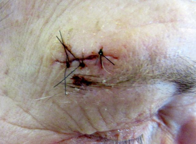 So we waited and he did remove them. I could have done it myself but I was unable to see above my eye without my eyeglasses. We waited and he unnecessarily put a topical anesthetic on the area. Finally he very slowly and carefully ( and painlessly removed my stitches ). The facture/bill was 100 euros. Wow!! Oh well, at least they were out.