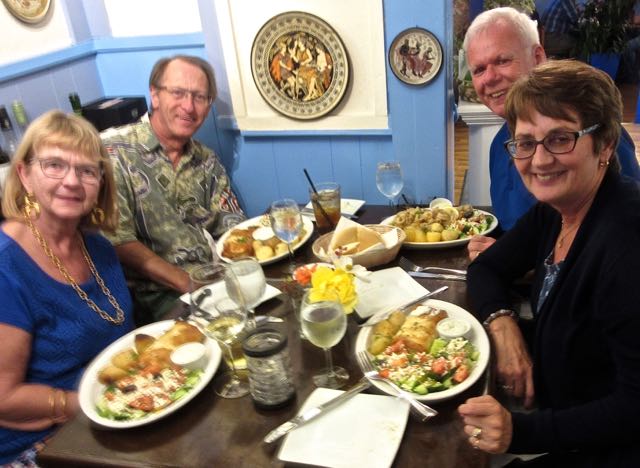 We went to the only large restaurant in our area, the Greek House.  We were there mid August with blog reader Paul and his wife Jan.  The food is as good as always with large portions as you can see.  Too bad our wait person had the shakes when she took this photo.  We all went to bed with full tummies.