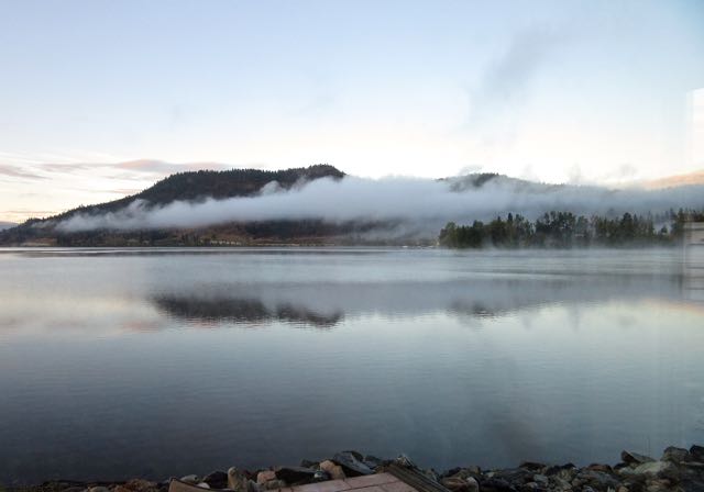 Yesterday morning started out with some low fog. Photo taken from inside hence a bit of reflection ( or dirty window ) in the upper right third of the photo.