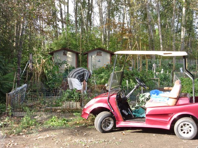 At the very end of a long work day at our desks/computers, Colin left about 4PM to start putting our garden to bed for the winter.  Those two sheds in the background are for storing communal garden tools, etc.