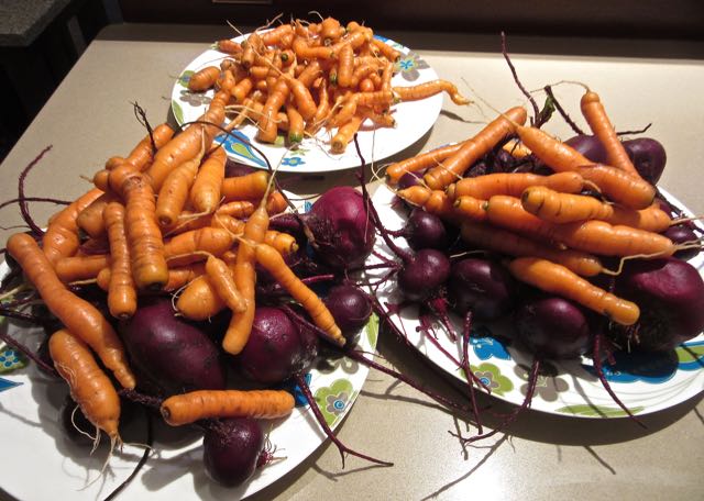 I already have a half of a crisper drawer full of beets in the fridge and will add these.  At least I know that they should do well in the fridge until we get back in the spring.  Hopefully we will be able to eat the rest of the carrots before we leave.  Colin also cleaned a lot of beet tops and Swiss chard and put them in those special green bags.  We will eat all of those before we leave.  During the last week the kale got bugs and some sort of mold so we never got to enjoy the last of it.  But I will grow both kale and Swiss chard on the Isla in pots as is my normal.