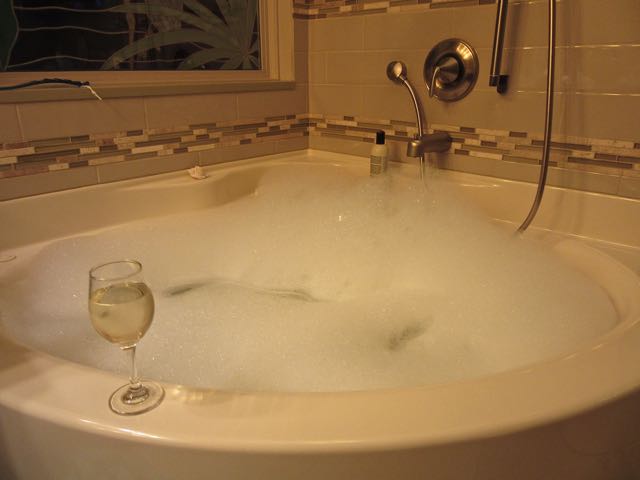 At the end of my very long day I relaxed with a book in the tub.