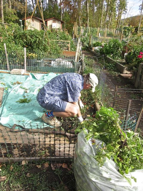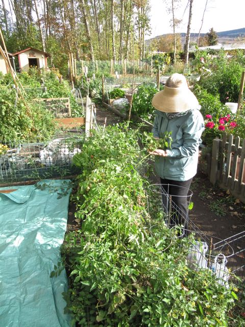 Colin cleaning up the final tomatoes.  We had five plants and the roots were very long.  Great crop.