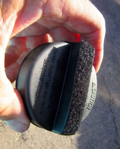 This is the new gas cap that we had picked up at Autozone the day prior. Colin came up with the idea of adding a trip of Velcro to the top of the cap.