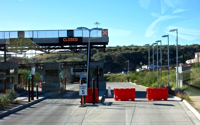 For the very first time ever we had our direct route into Mexico @ Nogales blocked.  We cautiously went in via the lane marked CLOSED and were able to get back to the lane that went to the extreme right of the US customs area.