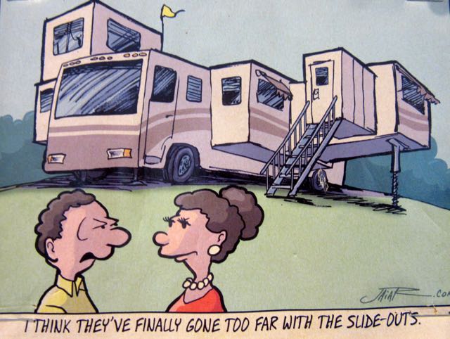 Wow that would have been a surprise to see that picture of the girls and what a lot of gall they had taking one of your photos!!! I do at least 15,000 steps a day and really wish someone would reward me with a high interest rate … and I love the comic about the RV slides 🙂