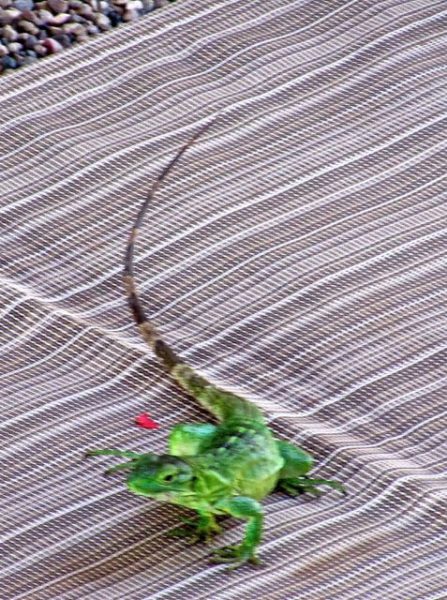 I stepped outside for a moment and there was this iguana walking towards me.  I dashed inside to grab my camera but didn’t have time to focus the lens.  It just kept coming.  Finally I started to chase it away.  I didn’t want it to get too comfortable in my garden.  I love my hibiscus.