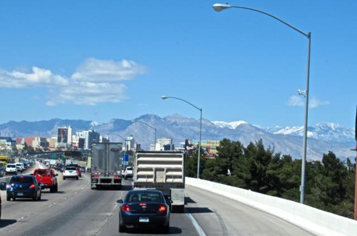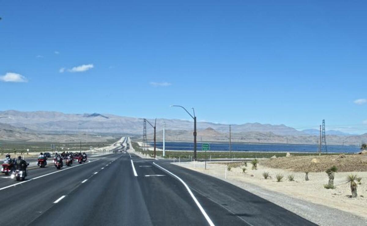 Several Harley bikers had been alongside us for the past few miles. They were turning left into Loves @ I15 and Hwy 93 which is directly in front of us. To the right you might see what appears to be a blue lake. In fact that is actually a solar farm.