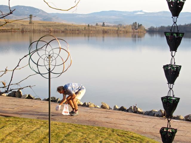 Then there was the goose poop pick up to be done. My job which used to be Caeli’s is to chase them off the lawn and back into the lake.  Have done so both days now.