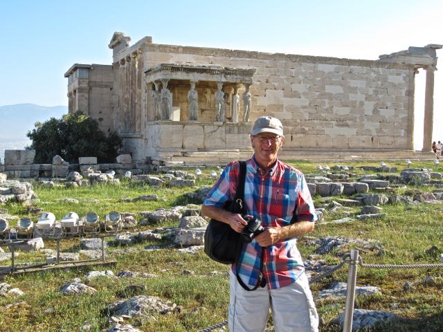 Standing in front of the Porch of the Maidens, part of The Erechtheion, an ancient Greek temple on the north side of the Acropolis dedicated to both Athena and Poseidon. Taken by me of course.