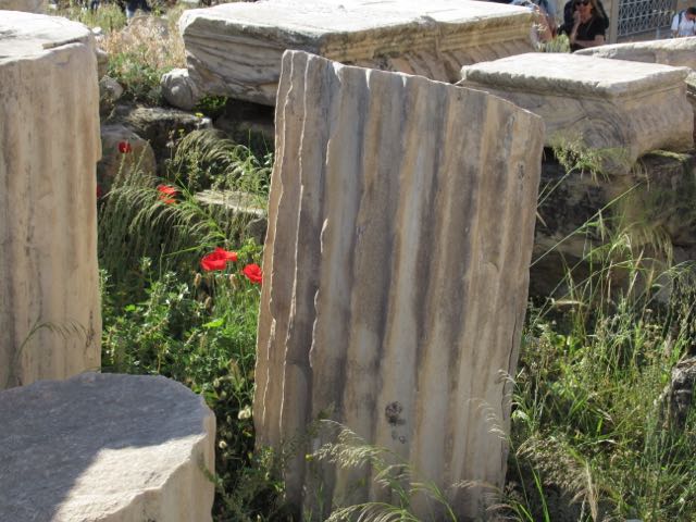 Poppies among pieces of the fallen Parthenon. Photo by me.