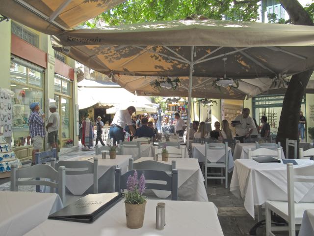 Once we left we walked to the Plaka to find a place for a very late breakfast at noon.  By now we had both changed shoes and my back was sore.  Time to sit, eat, relax a bit and plan our next move.  This and the next five shots were taken by me.