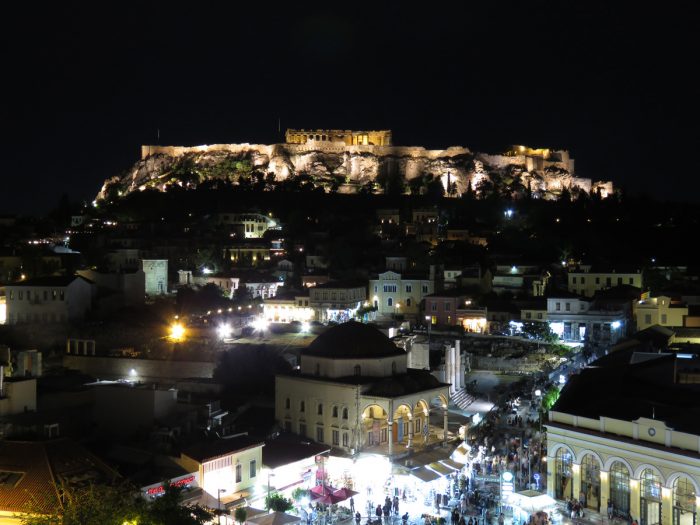 We made quick friends with those around us.  We even got free nuts, really good ones.  The wait staff whom we befriended later told us that they thought this was the best place in all of Athens to see what we were here to see.  I want to say that life doesn’t get any better but it turns out that it does. Photo by me.