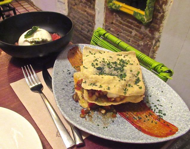 The other tapa was vegetable lasagna with onto, tapenade and béchamel.