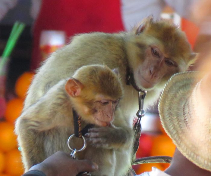 The monkeys are used to entice people to take photos and then they have to pay for the photo. Colin has a long telephoto lease.