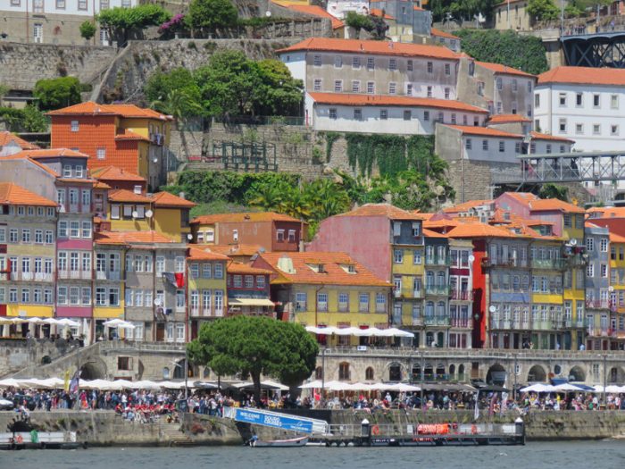 After the tour we walked along the Ribeira waterfront and walked over the Ponte de Luis 1 on the lower level to Gaia. Colin was in his element with so much to photograph. It slowly warmed up and eventually my jacket came off and finally my socks. I kept my sweater on all day. We stopped for lunch at one of the many restaurants, Bacalhoeiro (you can check it out on Trip Advisor ), along what I called the malecon. Our plan was to enjoy a lovely bottle of Portuguese wine along with two different preparations of the Bacalao/codfish, one of the main dishes that Porto is known for. We relaxed with the wine enjoying the views and were overwhelmed when our meals arrived, hence no photos. The food was served in two hot casseroles from which we served ourselves. We were able to easily share and enjoy the cuisine. The fish was good but chewy at times. It is prepared from dry salted cod. Our tour guide told us that she has never tasted fresh cod. Colin said he would try it again but if I did it would be a shredded cod in a different presentation.