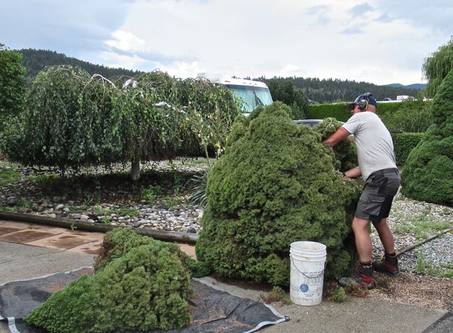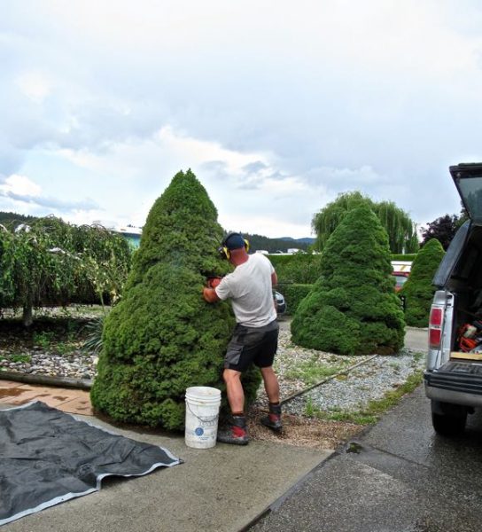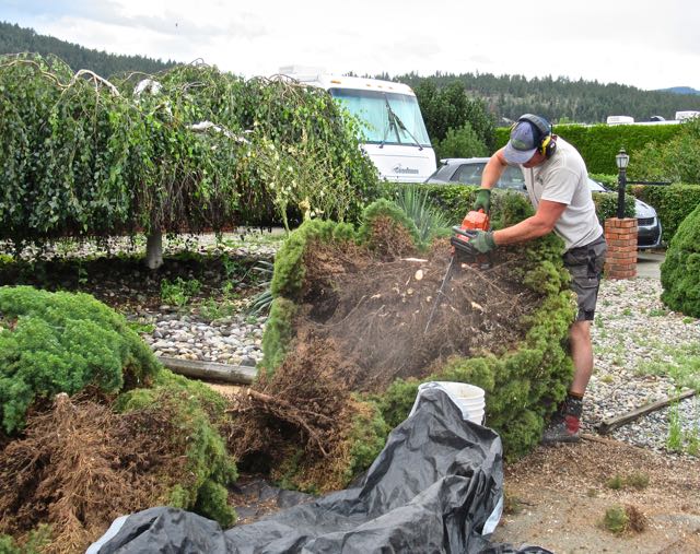 The trees have grown over the years and it is becoming increasingly difficult for Colin to get in and out of his vehicle. So we decided to remove the spruce.
