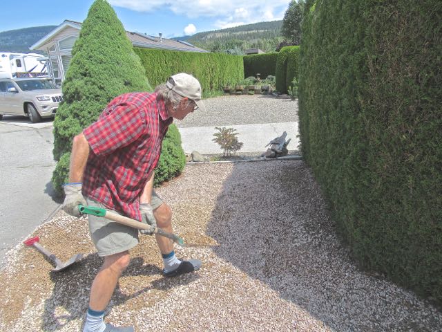 Colin and I were spreading the shale and taking some inside the yard to the few places we wanted to freshen up. Our original rocks were from 2012 and I felt they needed to be ‘spruced’ up 🙂