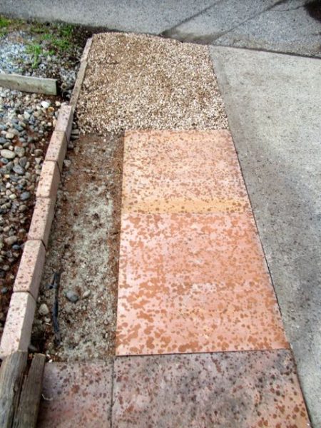 When we were flooded two years ago the lake sat on our patio for a long time before receeding and much of the sand under the patio tiles was washed away. You can see just below Colin’s foot on the right how the patio is no longer laying flat. We waited until this spring/summer to add more sand and to try and even it all out. You know me and my tripping issues. I wanted as few hazards as possible.