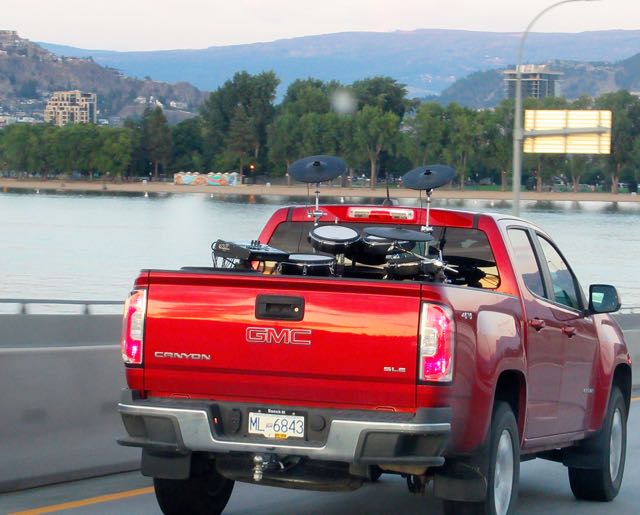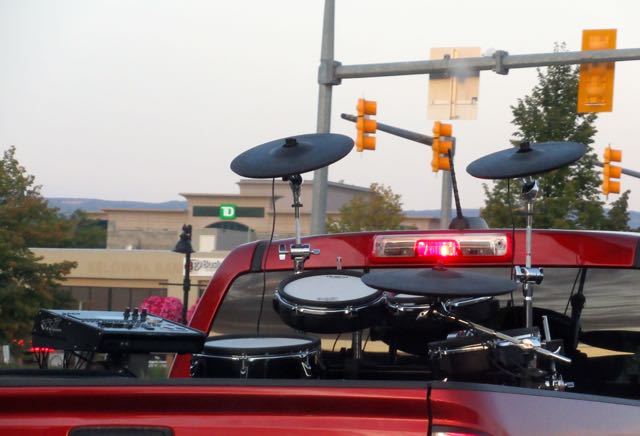 Who travels with instruments not to mention a computer sound board in the back of a pick up? The cymbals were flying. We could barely keep up to his speed.