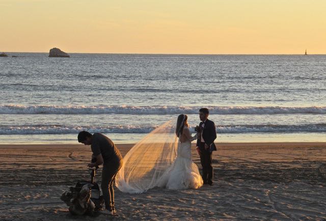 Sunset brought us a bridal couple. Her veil was naturally flowing in the breeze and the colour was perfect but the photographer had his back turned.