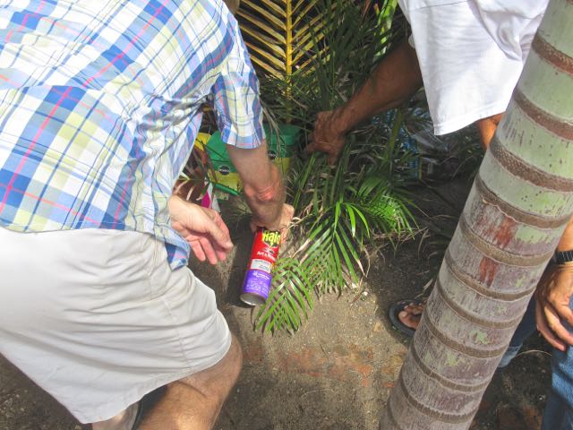 Colin and Ismael were planting three new palmas when they came across eleven large red ant nests, not just large ants but also huge nests.
