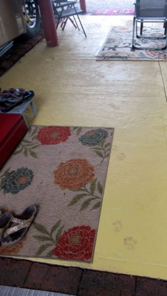 The prints came all the way from behind where this photo was taken, along our RV mat and right up to the end of the yellow patio. Of course Colin had to wash the patio and the RV mat again!