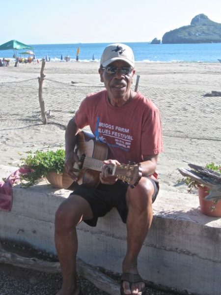 A week ago last Monday we had a group of musicians over for the afternoon. That happened again this past Monday. Mazatlan has a huge music scene and fellow RVers Mandy and Tom have become involved to the extent of bringing in some very impressive talent. Many of the same musicians are here for a few months but others are only here for one week. Tom and Mandy want to give these fellows an afternoon of relaxation at the beach. They provide most of the food and we provide our site along with pre and post clean up, some food, wine and beer and however else we can be of help. A win win for everyone.