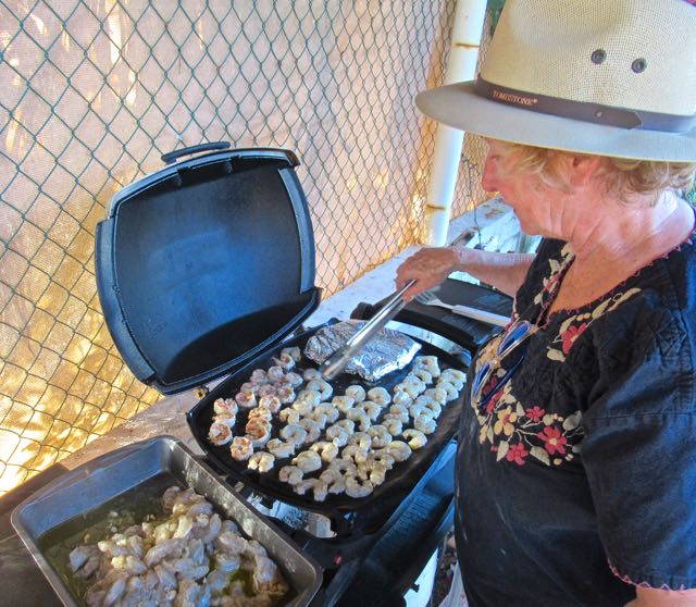 Mandy purchased and cleaned four kilos ( almost 9 pounds ) of shrimp along with some dorado fillets plus plus plus.