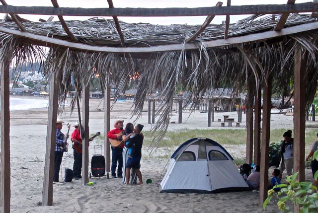 Last evening we had a family with three or perhaps four children set up a tent for the night right next to us across the road. Just at sunset they hired one of the bands that strolls the beach to entertain them. The band had an amplifier on wheels and it sure did create some reverberating music. Eventually the kids settled down and went to sleep. Never heard a thing this morning.
