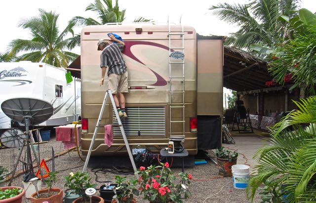 Colin is systematically washing the RV and then waxing it.  He is half way done at this point.