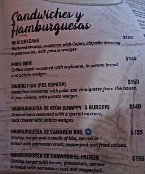 Our first visit to El Fish Market this winter. We usually sit outside but due to the cold and wet we sat inside where we discovered that the Super Bowl was on. We could have watched it back at the RV but it was fun glimpsing it on the large screen. I asked if they still served those great margaritas and the waiter suggested I order a Cadillac margarita. It was just acceptable but not worth 95 pesos when you could get a Pina colada or a lovely glass of wine for 55 pesos. I haven’t given up yet on margaritas but I am getting close.