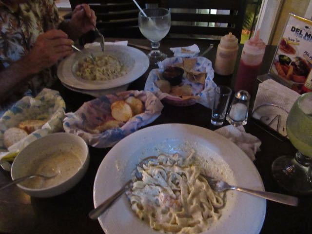 We had our usual shrimp fettuccine which was as delicious as ever and we have been having it for many years. Sadly the margarita as in most other places has gone downhill. The last two I had here that were perfect was with Suzanne a few years back after a Sunday symphony concert in January 2017. I can still taste them.