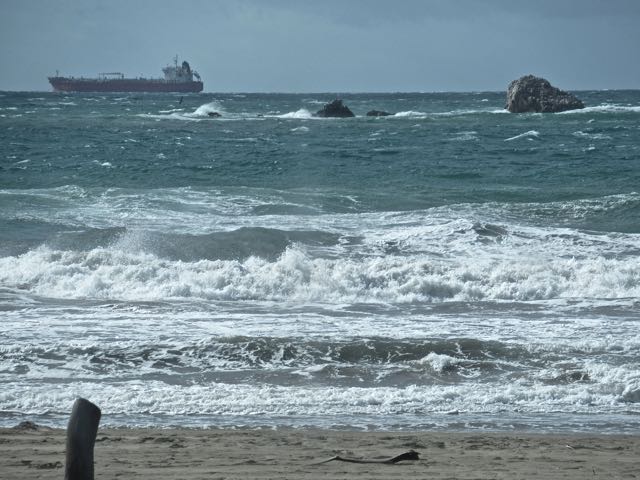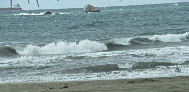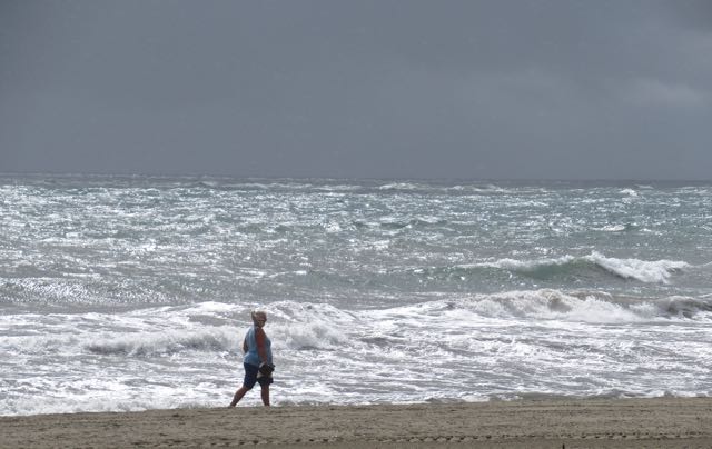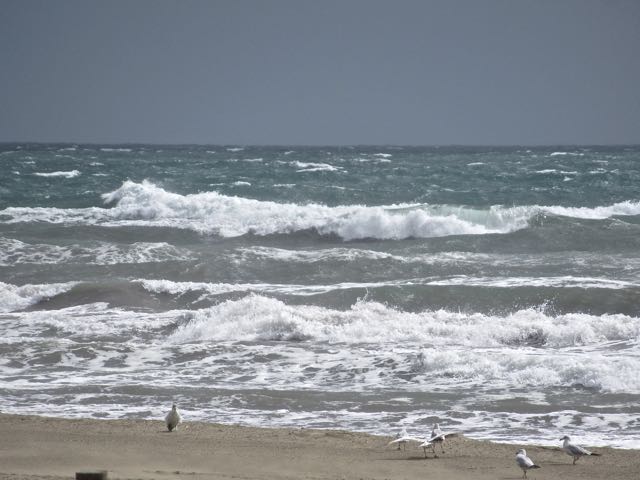 It rained off and on Sunday night and we awoke to a caldron of an ocean. So hard to capture the waves with a camera.