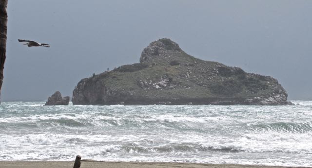 We did not get as much rain as forecast which was a blessing but still enough to make puddles and a mess of things. In Mazatlan the rain filled the streets very quickly to the point that some vehicles could not drive through. That is a heron flying past.
