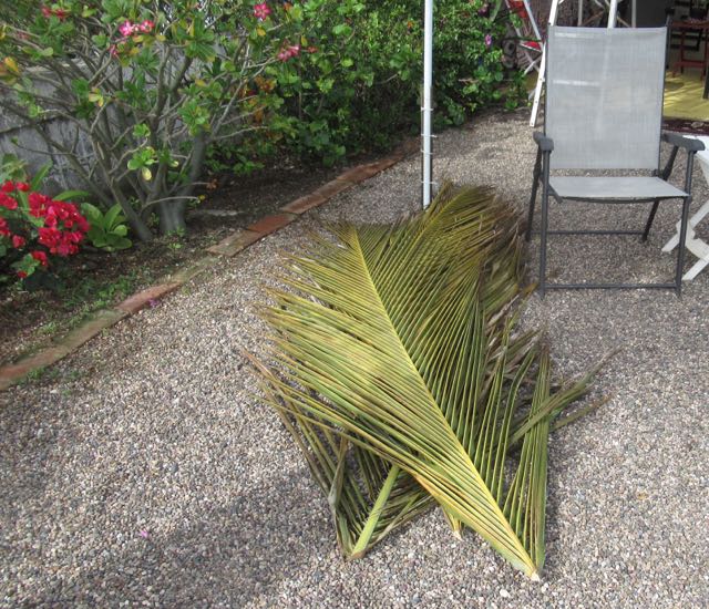 Some of our palm fronds fell out because of the wind. We will have to get Lupe back.