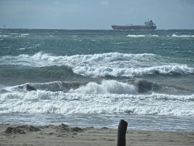 It rained off and on Sunday night and we awoke to a caldron of an ocean. So hard to capture the waves with a camera.